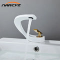 Basin Faucet Brass Hot and Cold Wash Basin Faucet White with Gold Bathroom Basin Modern Minimalist Creative Faucet PP-12085